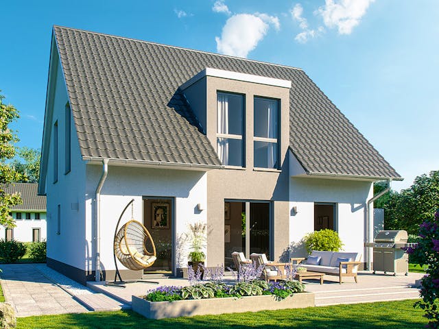 Das Einfamilienhaus Bamberg bietet auf 131 m² Wohnfläche großzügigen Raum für Ihre Familie, verteilt auf zwei Etagen. Ein besonderes Highlight ist die Flachdachgaube, die dem Haus eine moderne Note verleiht und für eine optimale Raumausnutzung sorgt. Im Erdgeschoss erwartet Sie ein großes, lichtdurchflutetes Wohnzimmer, das nahtlos mit einer offenen Küche verbunden ist. Ergänzt wird dieses Raumkonzept durch ein Arbeitszimmer und ein Gäste-WC, die zusätzlichen Komfort und Flexibilität bieten. Über die offene Treppe gelangen Sie ins Dachgeschoss, wo ein geräumiges Schlafzimmer mit angrenzender Ankleide auf Sie wartet. Zudem stehen Ihnen zwei individuelle Räume zur Verfügung, die vielseitig als Gäste-, Kinder- oder Arbeitszimmer genutzt werden können. Das großzügig geplante Badezimmer rundet das Raumangebot ab und sorgt für Wohlfühlatmosphäre.