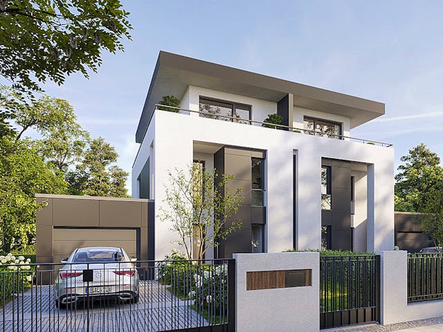 Lifestyle Doppelhaushälfte 158.1 - Auf gute Nachbarschaft Die Doppelhaushälfte Lifestyle DHH 158.1 verfügt über großzügige Fensterflächen. Besonders markant ist das Flachdach mit den groß dimensionierten Dachüberständen und die 3-seitig nutzbare Dachterrasse. Die abgebildete Garage gehört nicht zum Leistungsumfang. Diese bieten wir Ihnen auf Wunsch gern optional an. Beim Lifestyle DHH 158.1 handelt es sich um ein Typenhaus. Es wird in massiver Bauweise Stein auf Stein errichtet. Zum Einsatz kommen nur Produkte namhafter Markenhersteller. Alle unsere Haustypen sind auf Wunsch auch als KfW-40-Effizienzhäuser mit QNG-Zertifizierung erhältlich - für zukunftssicheres Bauen mit attraktiver staatlicher Förderung. Individuelles Bauen gehört zu unserem Markenkern. Deshalb planen wir Ihr Wunschhaus ganz individuell nach Ihren Vorgaben. Unsere Architekten setzen Ihre Vorstellungen dabei in kreativer Weise um und geben Ihnen wertvolle Tipps.