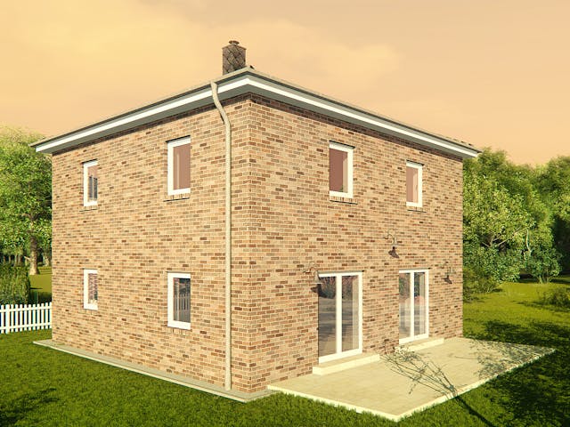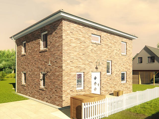 Stadtvilla Florenz 3 – Modernes Wohnen mit großzügigem Raumangebot Die Stadtvilla Florenz 3 bietet modernes Design und durchdachte Raumaufteilung auf zwei Ebenen. Mit einer großen Wohnfläche und clever geplanten Räumen ist dieses Haus ideal für Familien, die Raum für Entfaltung und Komfort suchen. Helle Räume, viel Platz und ein hoher Wohnkomfort stehen im Mittelpunkt dieser Stadtvilla. Wichtige Merkmale: • Großer Wohn- und Essbereich: 26,6 m² im Erdgeschoss, ideal für Familienleben und gemeinsames Beisammensein. • Geräumige Küche: 9,6 m², die genügend Platz für Ihre kulinarischen Bedürfnisse bietet und direkt am Wohnbereich liegt. • Drei Schlafzimmer im Obergeschoss: Das Hauptschlafzimmer mit 14,6 m², ein Kinderzimmer mit 12,9 m² und ein Gästezimmer mit 9,2 m². • Modernes Badezimmer: 7,9 m² im Obergeschoss, ausgestattet mit Badewanne und separater Dusche. • Zusätzliches Gäste-WC: Praktisch im Erdgeschoss gelegen für Besucher. • Hauswirtschaftsraum: 7,2 m², bietet viel Stauraum für alle Alltagsgegenstände und Haushaltsgeräte. Durchdachter Grundriss Beim Betreten des Hauses gelangen Sie in die einladende Diele (9,5 m²), die in den großzügigen Wohn- und Essbereich(26,6 m²) führt. Der Raum ist hell und bietet ausreichend Platz für ein gemütliches Wohnzimmer sowie einen Essbereich für die ganze Familie. Große Fenster lassen viel Licht herein und schaffen eine freundliche Atmosphäre. Die Küche (9,6 m²) ist direkt an den Wohnbereich angeschlossen und ermöglicht einen reibungslosen Übergang zwischen Kochen und Wohnen. Ein weiteres Highlight im Erdgeschoss ist das Gäste-WC, das Ihren Besuchern zusätzlichen Komfort bietet. Im Obergeschoss finden Sie drei geräumige Schlafzimmer. Das Hauptschlafzimmer mit 14,6 m² bietet viel Platz für Ruhe und Entspannung, während das Kinderzimmer (12,9 m²) und das Gästezimmer (9,2 m²) vielfältige Nutzungsmöglichkeiten bieten. Das moderne Badezimmer (7,9 m²) rundet das Obergeschoss mit seiner hochwertigen Ausstattung ab. Ihr neues Zuhause Die Stadtvilla Florenz 3 vereint modernes Wohnen mit einer großzügigen Raumaufteilung, die perfekt auf die Bedürfnisse von Familien zugeschnitten ist. Helle und offene Räume sowie durchdachte Details schaffen ein Wohnambiente, in dem Sie sich rundum wohlfühlen können. Dieses Haus bietet Ihnen den idealen Raum für ein harmonisches Familienleben.