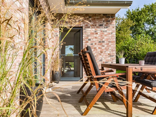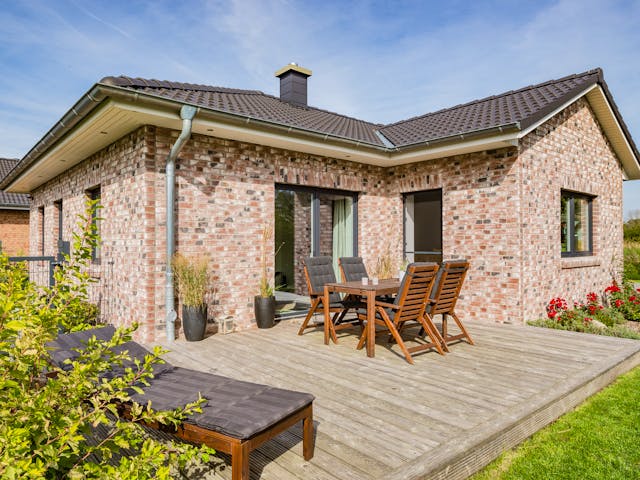 Der Bungalow mit seiner offenen Art und einenem Anbau wo die Küche drin untergebracht ist mit Zugangen zur beiden Terrassen, egal ob Morgensonne oder Abendsonne hier ist beides von der Küche gut zu erreichen, einem Vollbad mit begehbarer Dusche, hier ist alles vorhanden für die was das Herz begehrt