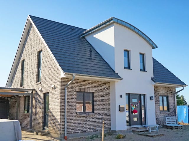 Hier mal ein Haus mit etwas anderem Giebel (einem Tonnendach) wirkt etwas moderner und bietet im Dachgeschoss noch Platz für einen vollständigen Raum oder einen großen Flur, hier ist der Flur sehr großzügig gestaltet und hat auch noch eine extra große Gaderobe für die Winter- bzw Sommerjacken