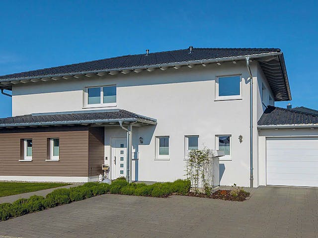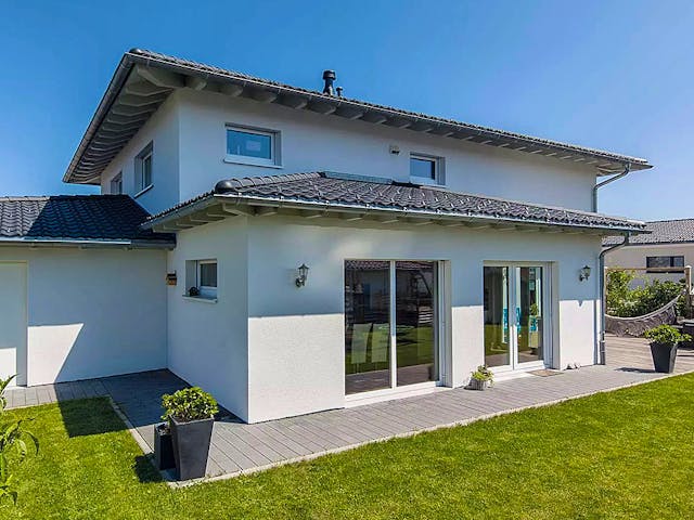 Mediterrane Stadtvilla mit separater Gästewohnung. Die pfiffige Stadtvilla Faber beeindruckt durch schlichte Eleganz in Kombination mit optimal genutzter Wohnfläche von 216 m². Eine großzügige Lösung des Hauses ist, dass dieses über eine komplette Gästewohnung verfügt. Über den Windfang des Erdgeschosses mit insgesamt 123 m² Wohnfläche können zwei getrennte Wohnbereiche betreten werden: die Räumlichkeiten der Bewohner sowie die Gästewohnung. Zum Hauptwohnbereich gehören eine separate Diele, ein Gäste-WC, ein Hauswirtschaftsraum und das fast 47 m² große Wohn-/Esszimmer mit offener Küche und Terrassenzugang. Die Gästewohnung verfügt über einen kleinen Flur, ein Schlafzimmer, ein Duschbad und ein über 24 m² großes Wohnzimmer mit Küche. Auch hier gibt es einen Zugang zur Terrasse. Das Obergeschoss ist ein Vollgeschoss mit 93 m² Wohnfläche. Ausreichend Platz also für drei fast gleich große Kinderzimmer mit großzügigem Bad. Zum Elternschlafzimmer gehören ein Ankleidebereich und ein eigenes Duschbad. Darüber hinaus befindet sich noch ein Technikraum auf dieser Etage. Preis auf Anfrage